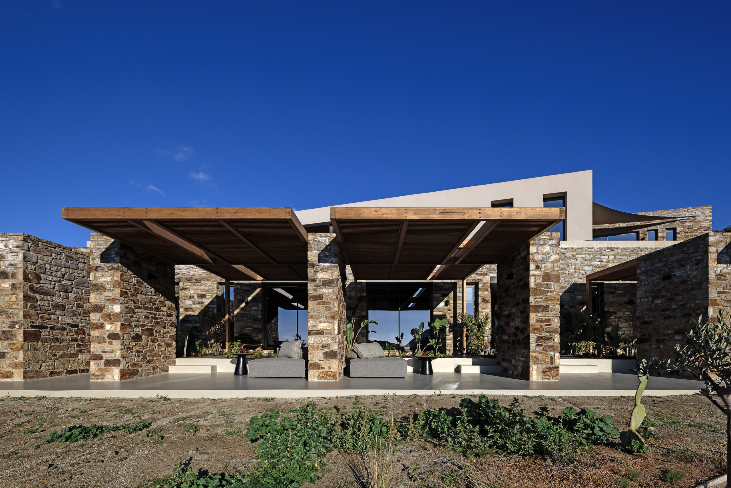 From sunrise to sunset, the villa offers breathtaking panoramic views over the Aegean Sea.