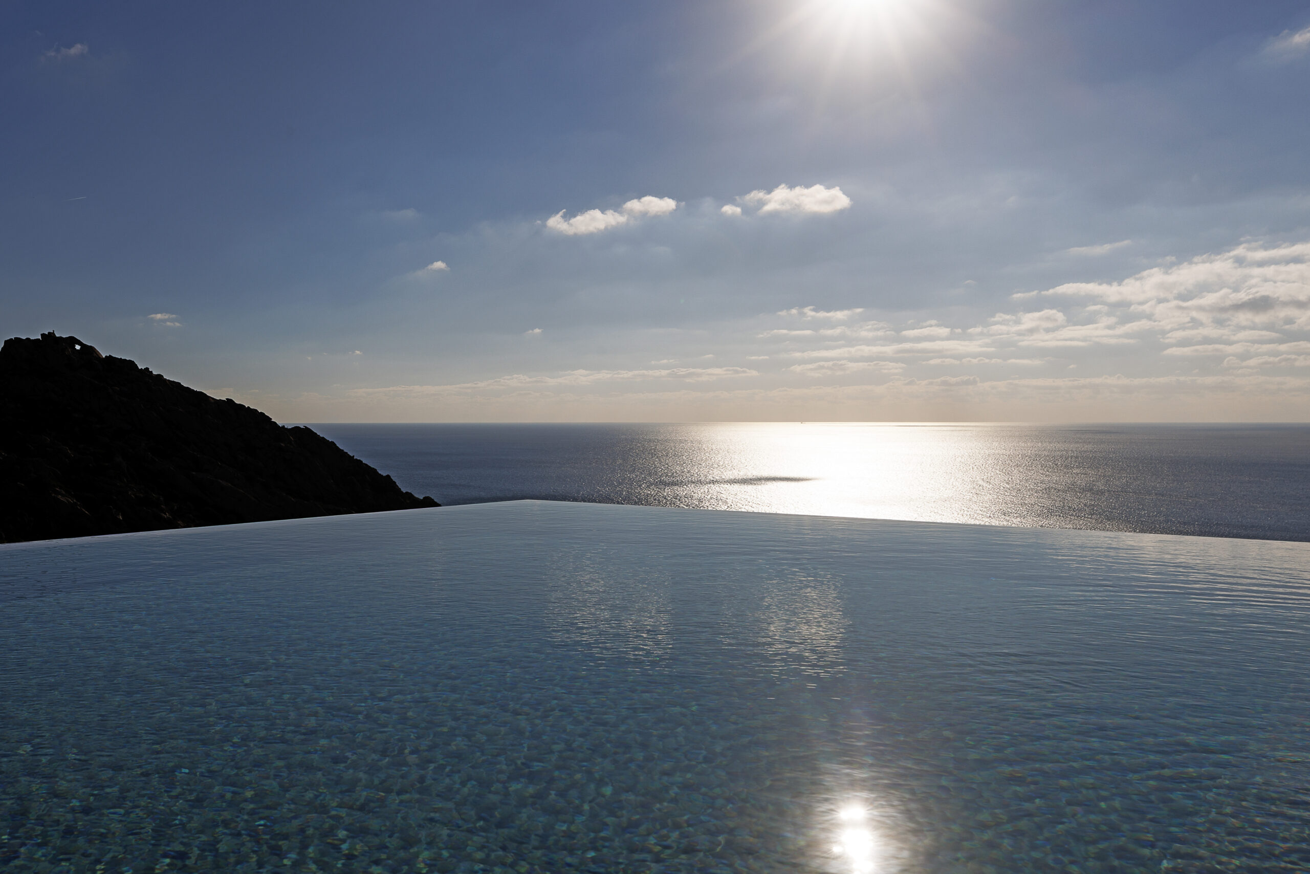 The infinity pool appears to merge seamlessly with the sea, creating a striking visual experience that enhances every moment spent outdoors.
