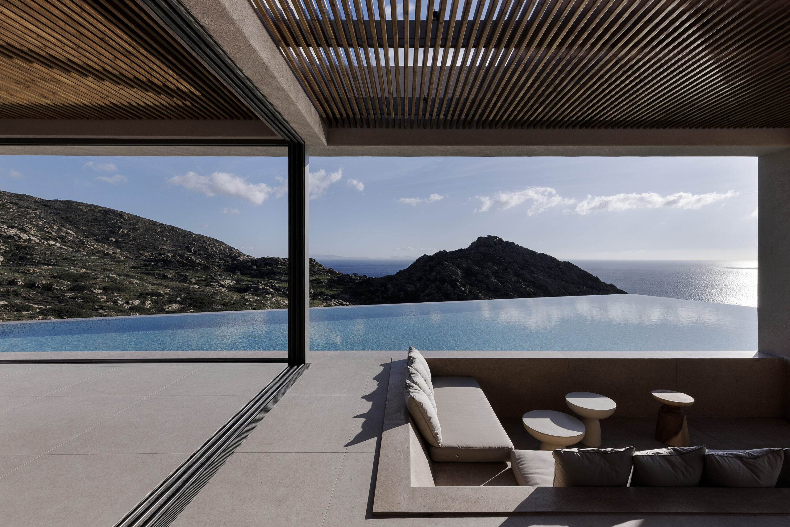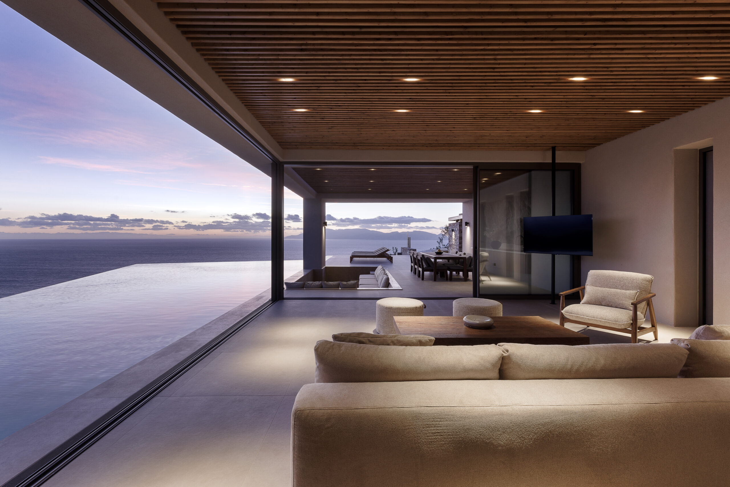 From sunrise to sunset, the villa offers breathtaking panoramic views over the Aegean Sea.